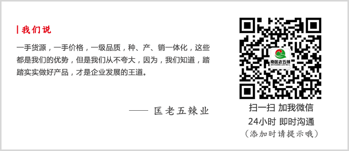 湖南匡老五辣業(yè),21年專注干辣椒批發(fā),如對(duì)我們的產(chǎn)品感興趣,歡迎點(diǎn)擊右側(cè)客服咨詢或者撥打400-6628-308,歡迎您的垂詢!