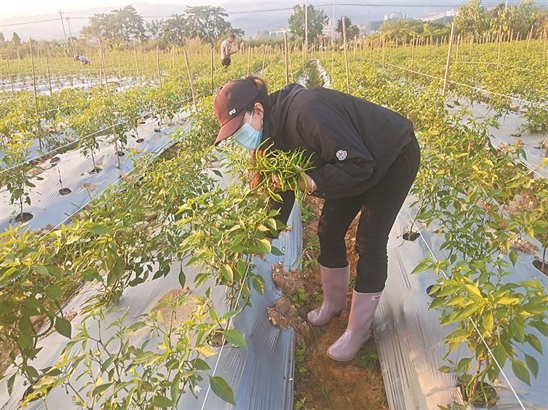 辣椒產(chǎn)業(yè)的發(fā)展不僅為村民帶來了務(wù)工收入,還調(diào)動了村民種植辣椒的積極性,為鄉(xiāng)村振興增添了活力。象滾塘村村委會采取“公司+合作社+農(nóng)戶”模式連片種植,招用的工人均來自周邊村民,近兩個月來招用人數(shù)約30余人,帶動了村民就業(yè),增加了村民收入。