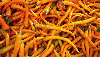 辣度香濃 黃艷艷,辣津津,正宗的黃貢椒皮薄肉厚,兼具甜、辣、脆的特點。 |
